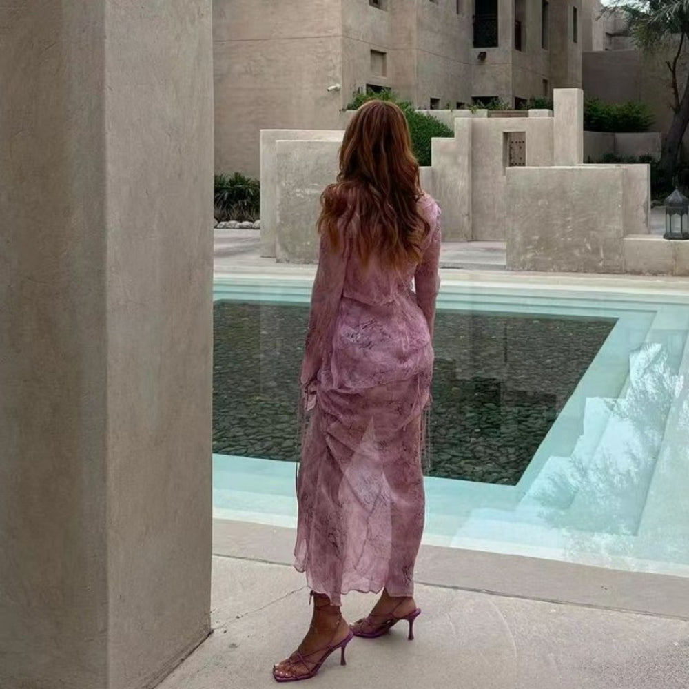 Tarzını modern dokunuşlarla buluşturan bu iki parçalı set, cesur ve seksi bir görünüm sunuyor. Yeşil tonlarındaki baskılı örgü uzun kollu gömlek, vücuda oturan maxi etekle mükemmel bir uyum sağlıyor. Bodycon kesimiyle feminen hatlarınızı ön plana çıkaran bu set, hem plajda hem de kulüpte dikkat çekmek isteyenler için ideal bir tercih.