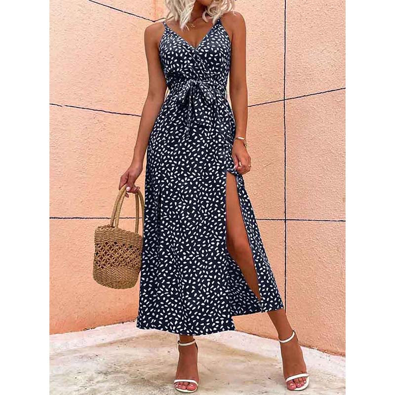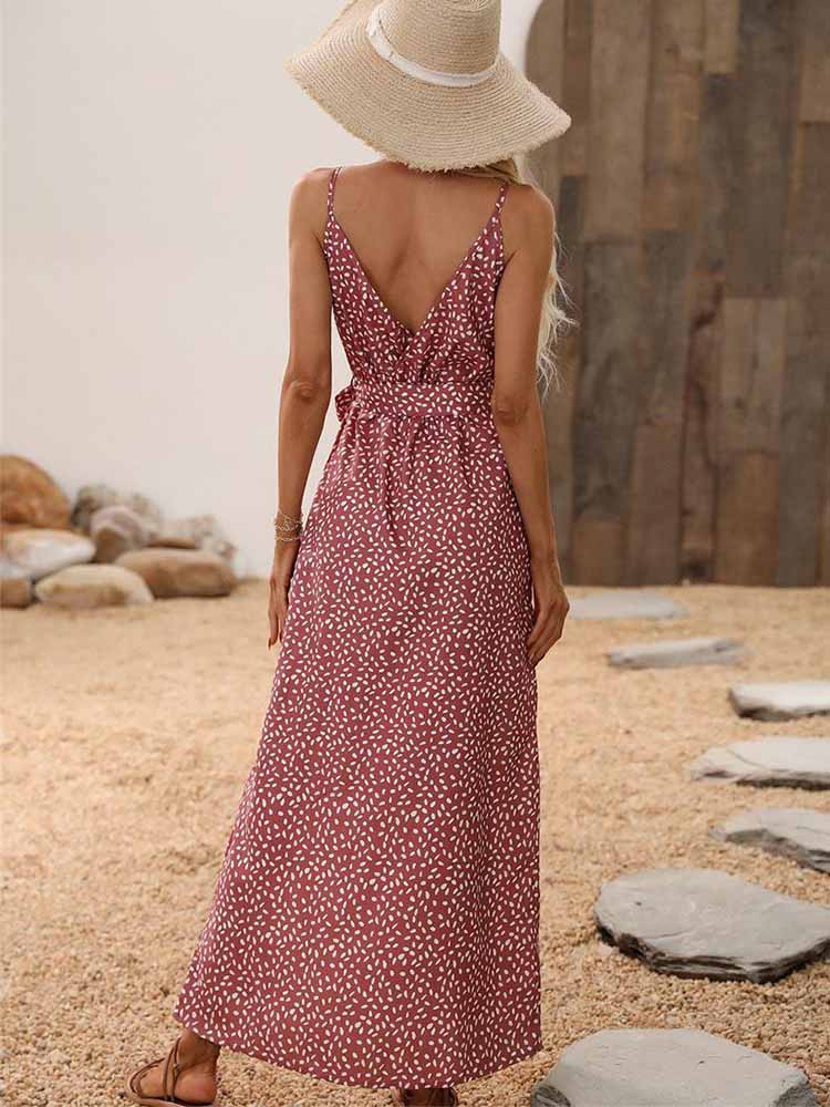 Yazın zarif şıklığını yansıtan bu çiçek baskılı uzun elbise, seksi backless (sırtı açık) tasarımı ve ince bandaj detaylarıyla plaj stiline sofistike bir dokunuş katıyor. Yüksek yarık detayı ve V yaka kesimiyle feminen bir görünüm sunarken, kolsuz yapısıyla rahatlığı ön planda tutuyor. Siyah rengin zarafetiyle harmanlanan bu elbise, yaz ve bahar davetlerinden plaj gezilerine kadar her anınıza stil katacak.
